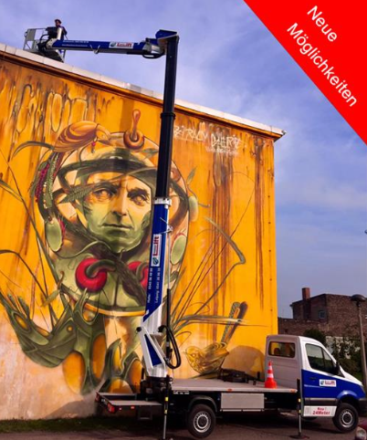 – Spezialmaschine für Arbeiten über Hindernisse wie z.B. Vordächer oder Gehwege