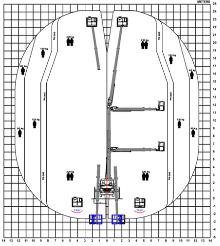 – Reichweite bis zu 3m unterhalb der Standfläche der Bühne für z.B. Arbeiten unterhalb einer Brücke